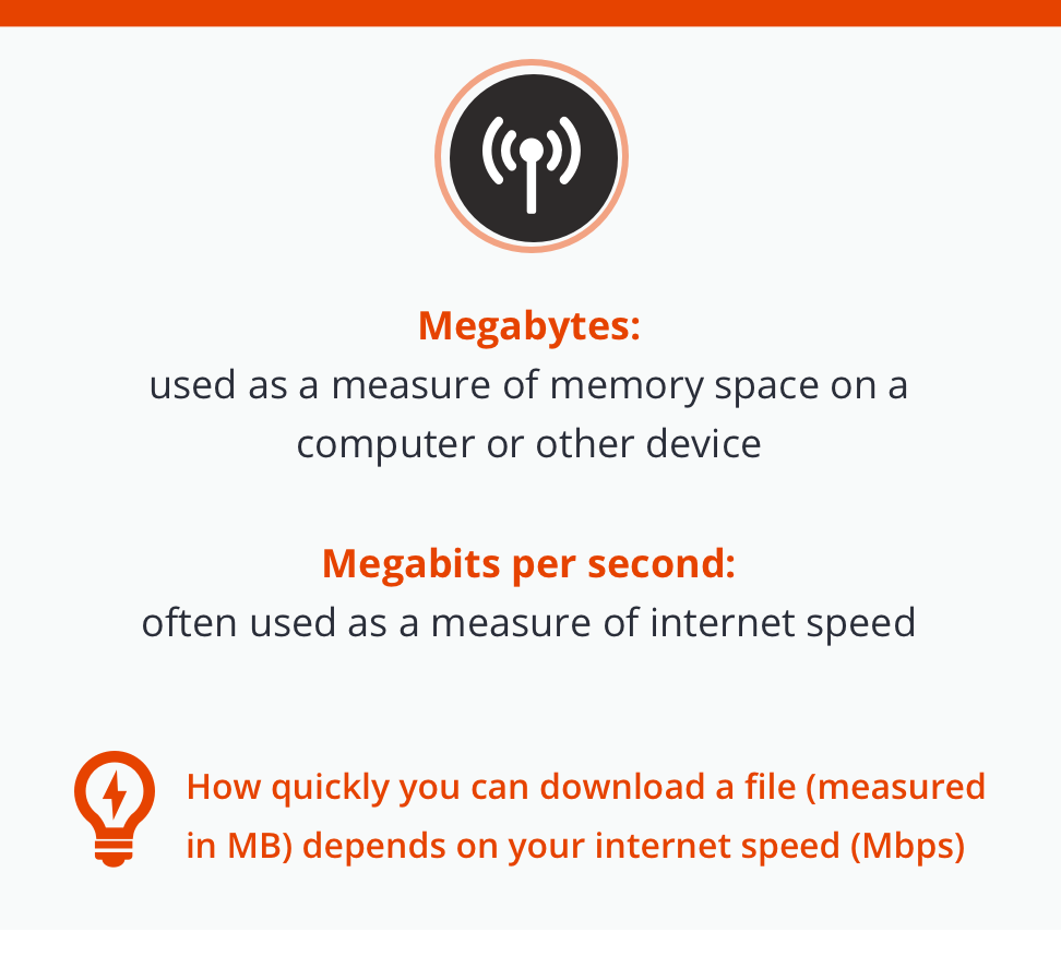 Sound a little confusing? Read through this article for a complete explanation of the difference between Mbps and MBps, as well as helpful information on download speeds and network performance. If you know what you’re looking for, you can also click or tap one of the links below to head straight to that section.